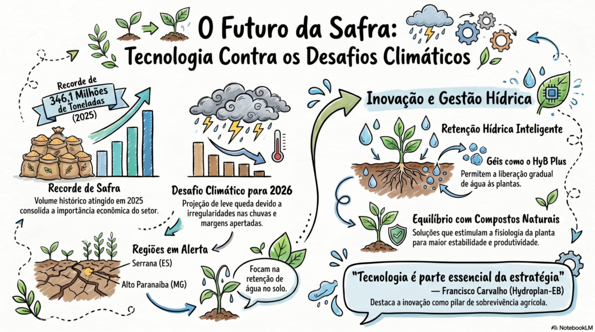 Produtos como o HyB Plus auxiliam na retenção e liberação gradual de água, enquanto soluções de irrigação aumentam a eficiência do uso hídrico. Compostos naturais estimulam o equilíbrio fisiológico das plantas, promovendo maior produtividade e estabilidade. Francisco Carvalho, gerente comercial da Hydroplan-EB, destaca que a tecnologia é hoje parte essencial da estratégia agrícola.