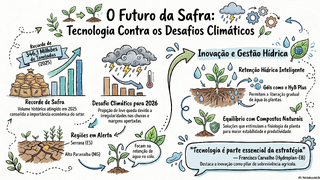 A agricultura brasileira atingiu em 2025 uma safra histórica de 346,1 milhões de toneladas, consolidando sua importância econômica. Porém, a projeção para 2026 indica uma leve queda na produção, influenciada por irregularidades climáticas e margens mais apertadas, segundo dados do Instituto Brasileiro de Geografia e Estatística (IBGE).