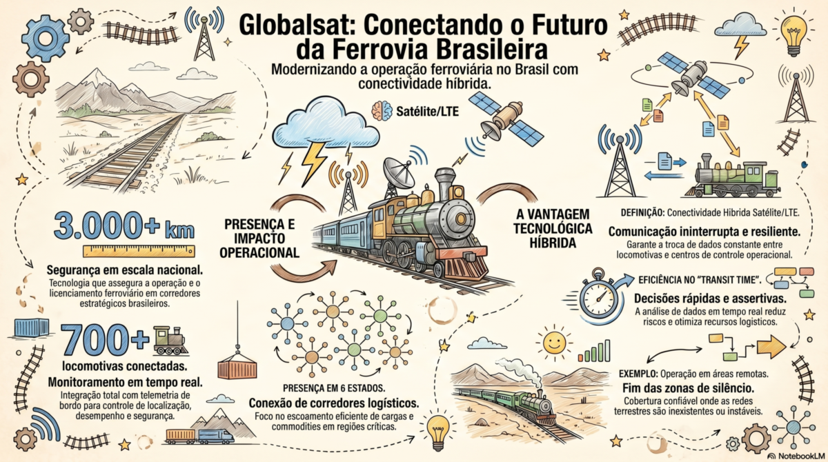 A retomada dos investimentos em infraestrutura ferroviária no Brasil tem impulsionado a demanda por tecnologias avançadas de comunicação. Nesse cenário, a Globalsat Group se destaca como uma das principais provedoras de conectividade crítica para o setor, integrando redes satelitais e LTE em soluções híbridas.